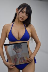 桜井:衣装でハイレグ衣装を着たんです。DVDとかだと私はあんまりハイレグ着ないので、そこまでハイレグはなかったんですけど、ワンピース水着も着たんです。なにかそれがかなり新鮮だった。何だろう、海岸とかで、撮って、けっこう美脚に見えるように撮ってもらったんです。恥ずかしかったんですけど、頑張りました。